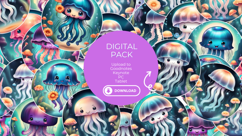 Enhance your digital planning and note-taking experience with our delightful set of 40 Jellyfish digital stickers!