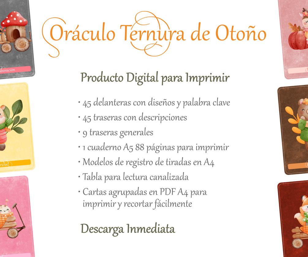 Oráculo Ternura de Otoño + Cuaderno | Digital para Imprimir | Cartas para Sanación, Crecimiento Personal y Bienestar Emocional | Lecturas